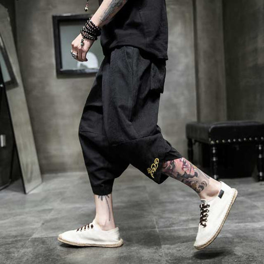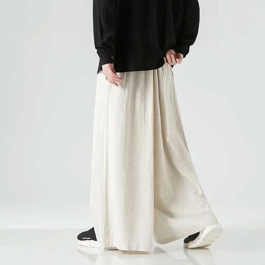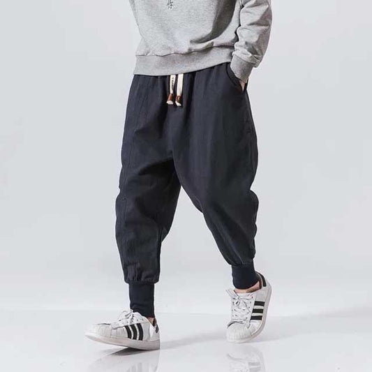 Pantaloni di lino a gamba a gamba a gamba a flusso Zen-Pantaloni harem Stile da uomo